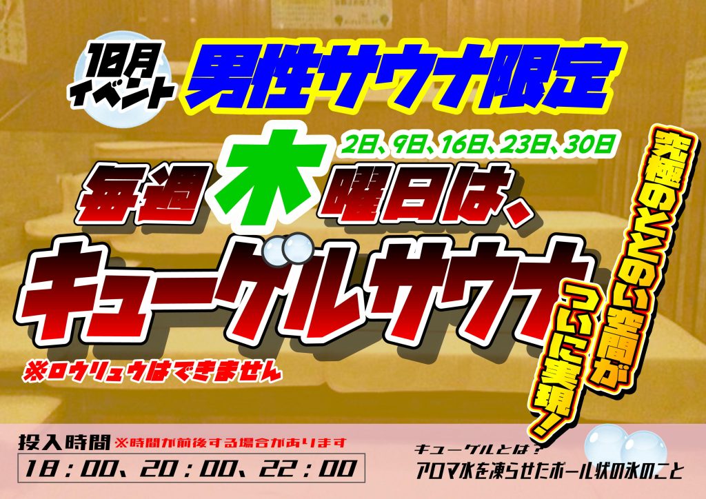 男性サウナ限定😎木曜日夕方はキューゲルサウナ✨✨