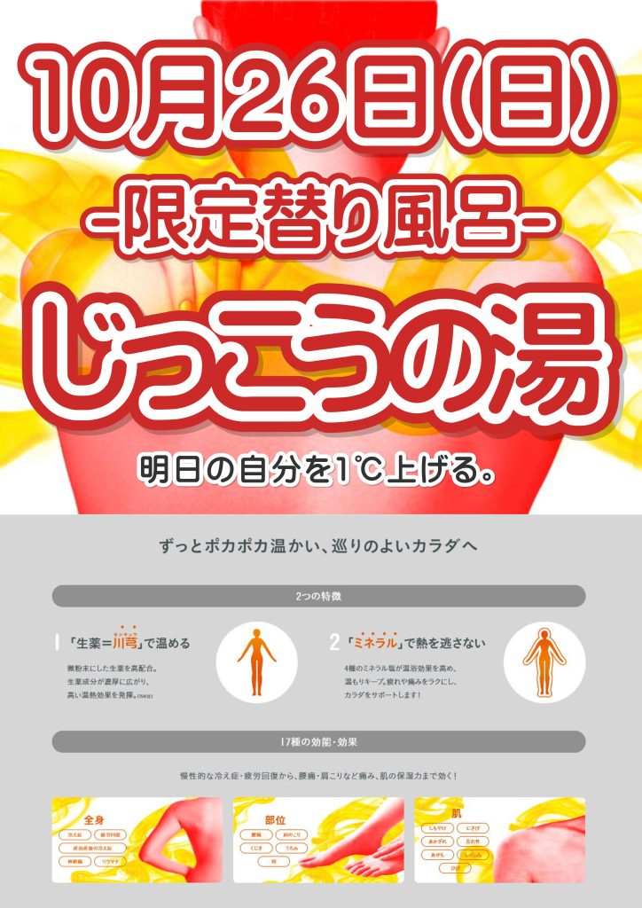 26日(日)限定替り風呂「じっこうの湯」