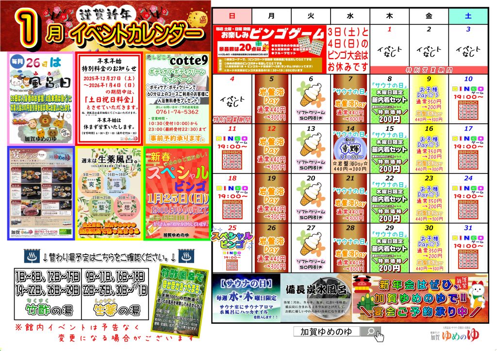 1月のイベントカレンダーが完成いたしました