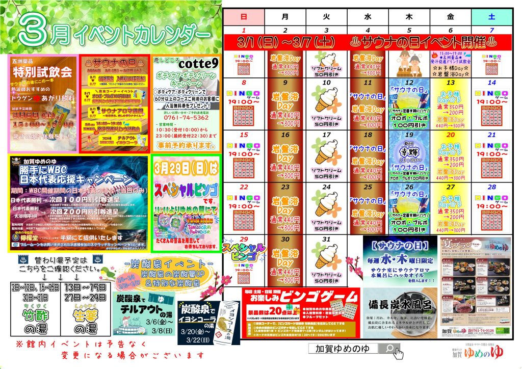 3月のイベントカレンダーが完成しました🌿