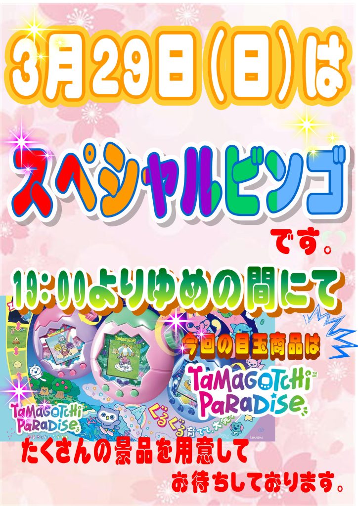 3月のスペシャルビンゴは29日(日)開催です✨✨